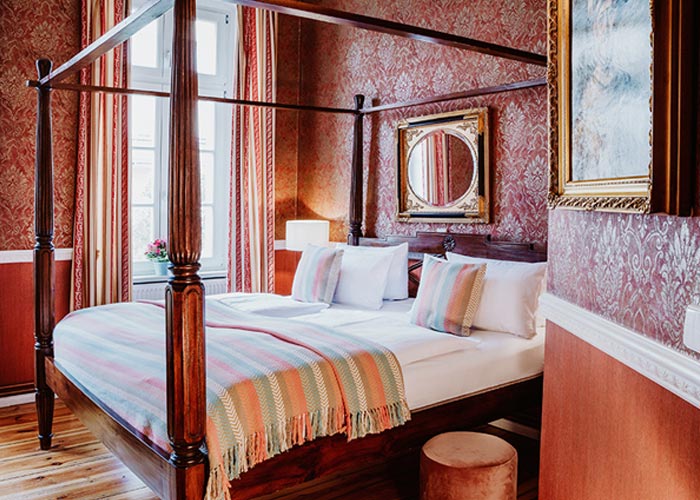 Romantische Zweisamkeit lässt sich in unseren Doppelzimmern, teilweise mit Himmelbett ausgestattet, genießen. Hier vergisst man schnell den hektischen Alltag. Je nach Wunsch sind die Zimmer mit Duschbad oder Badewanne verfügbar.